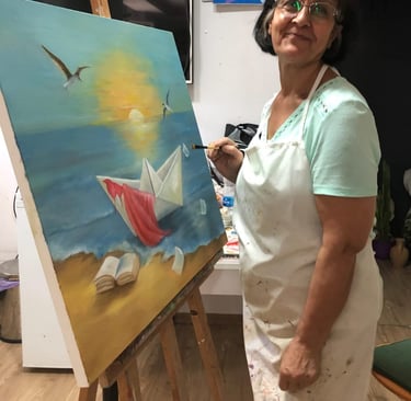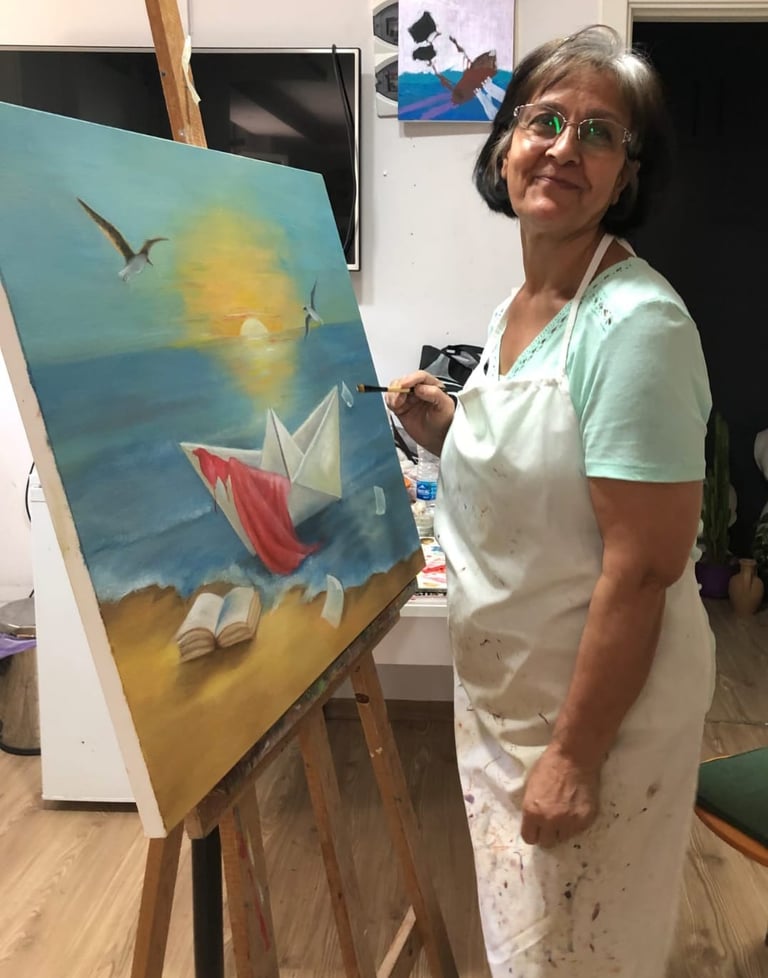 She continues her artistic production using oil painting and charcoal techniques.